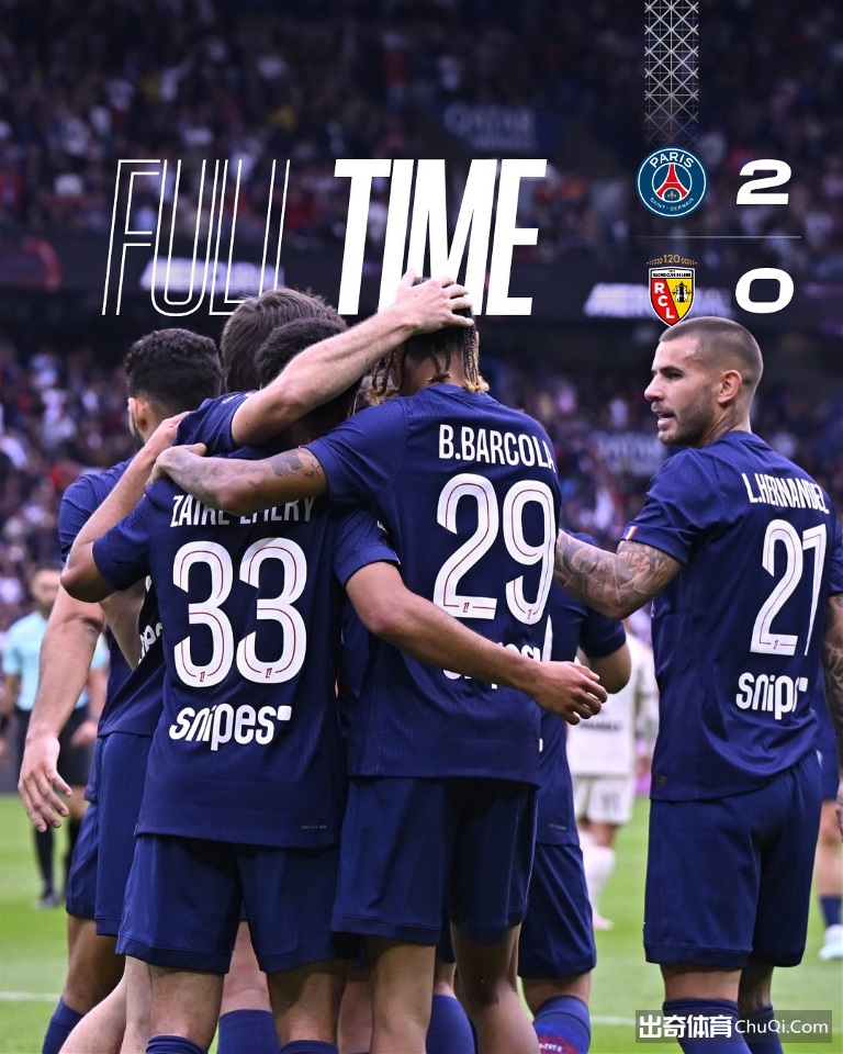 北京时间9月14日晚23时15分,2025-26赛季法甲第4轮在王子公园体育场展开角逐,巴黎圣日耳曼主场迎战朗斯。上半场巴尔科拉兜射世界波,维蒂尼亚抢断送助攻,克瓦拉茨赫利亚伤退,下半场巴尔科拉双响+贴地斩,维蒂尼亚再送助攻,李刚仁和贝拉尔多伤退。最终巴黎圣日耳曼主场2-0战胜朗斯,巴黎联赛开局取得4连胜领跑积分榜,巴黎本场3人伤退+周中欧冠将对阵亚特兰大。