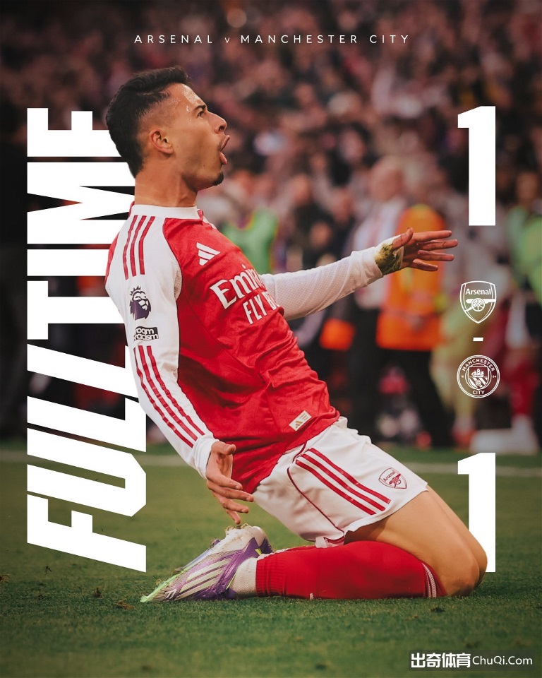 第90+3分钟,埃泽送出挑传,马丁内利机敏前插,面对多纳鲁马吊射得手,阿森纳1-1曼城。