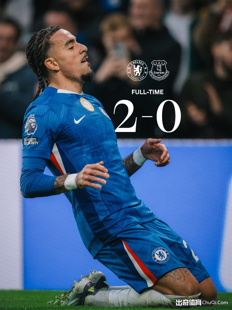 第21分钟,古斯托送出直塞,帕尔默前插获得单刀球机会,面对皮克福德爆射得手,切尔西1-0埃弗顿。