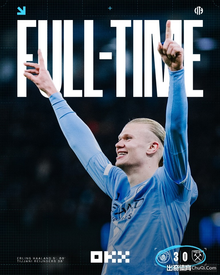北京时间12月20日23:00,英超联赛第17轮曼城迎战西汉姆的比赛在伊蒂哈德球场进行,上半场哈兰德补射闪击得手+头球造险,铁锤帮0射门,哈兰德助攻赖因德斯抽射扩大比分,半场结束,曼城2-0西汉姆。下半场鲍文抽射造险,哈兰德抽射完成双响,最终曼城3-0西汉姆联各赛事7连胜暂登榜首。