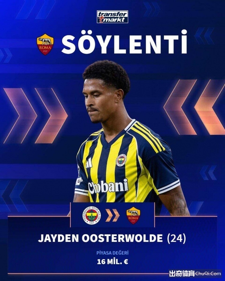12月31日讯 据《全市场》报道,罗马有意荷兰后卫奥斯特沃德,费内巴切要价2500万欧元。