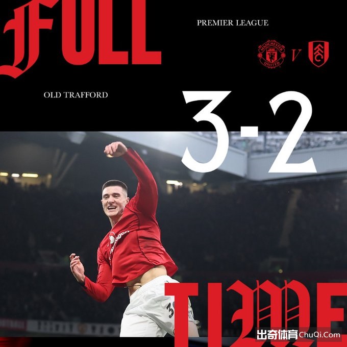 第94分钟,曼联绝杀!B费右路拿球横传点球点附近舍什科转身抽射破门,曼联3-2富勒姆。